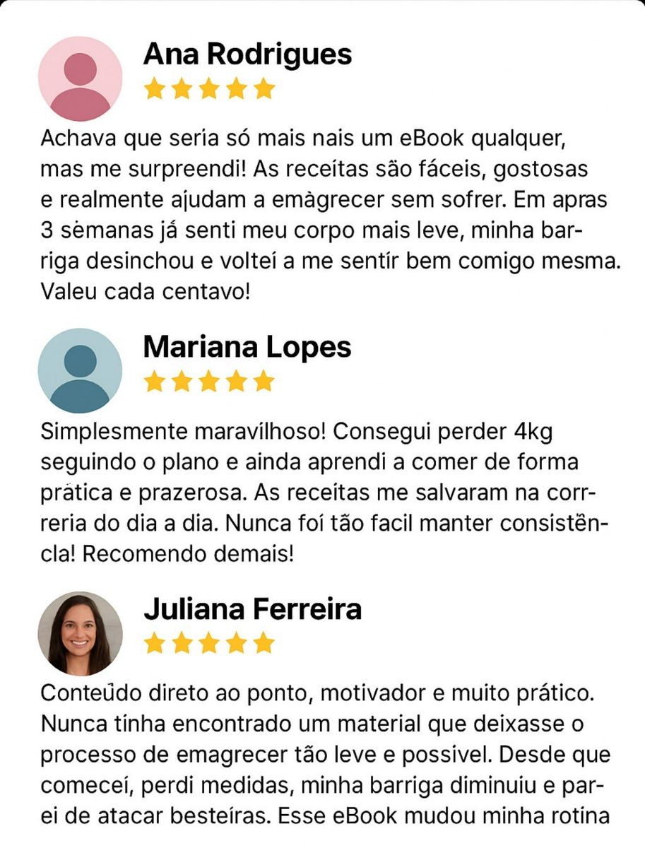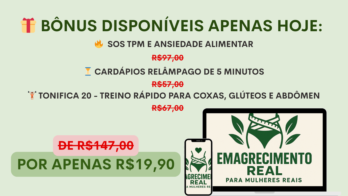 🎁 Bônus exclusivos: “Plano de 21 dias - Emagrecendo de forma saudável", "50 receitas de doces saudáveis", e muito mais.